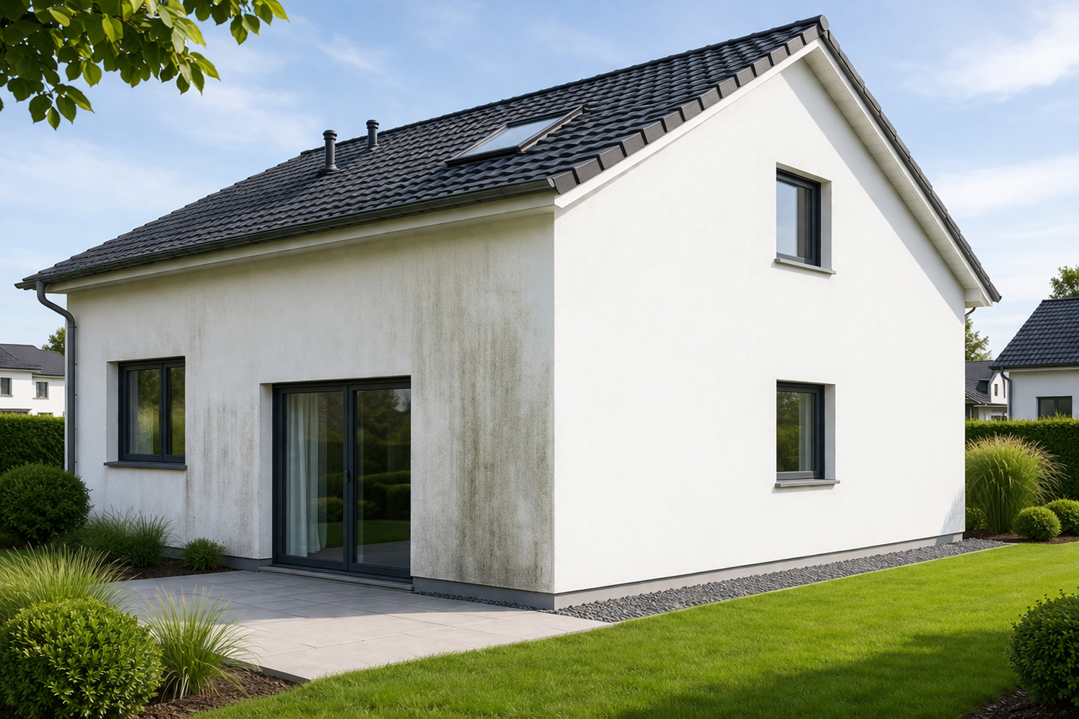 Bringen Sie Ihre Fassade wieder zum Strahlen! Wir entfernen schonend Algen, Schmutz und Ablagerungen und sorgen für ein gepflegtes, neuwertiges Erscheinungsbild.